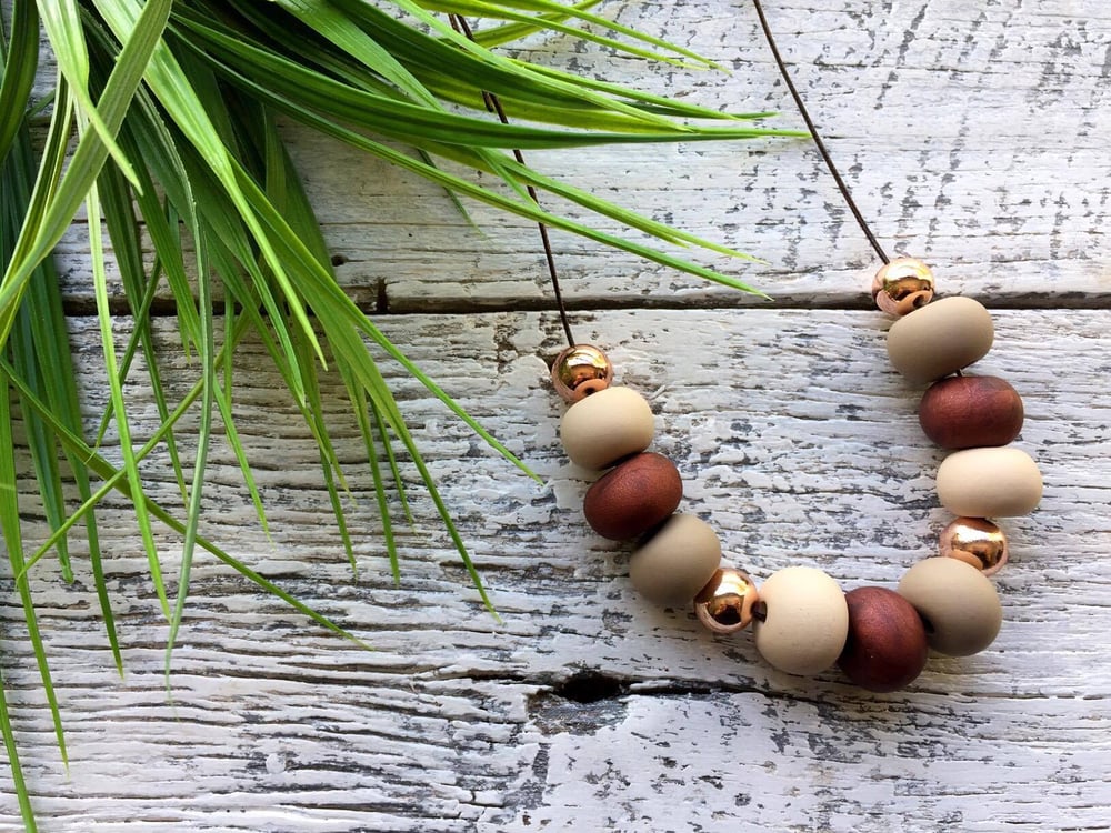 We have jazzed up our classic clay necklace range with the addition of quality rose gold beads and finished off with an adjustable cord to alter the length, just the way you like it.
